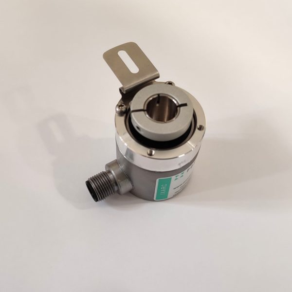 Encoder Incremental Magnético POSITAL FRABA Alimentación 4,75-30 V DC, por defecto 32768 ppr, HTL, Programable (de 1-16384 pulsos, HTL/TTL, sentido contaje), brida clamp 36 mm, eje hueco ciego ø 12 mm, Antigiro coliso ø 42 a 63 mm, Salida conector radial M12 de 8p